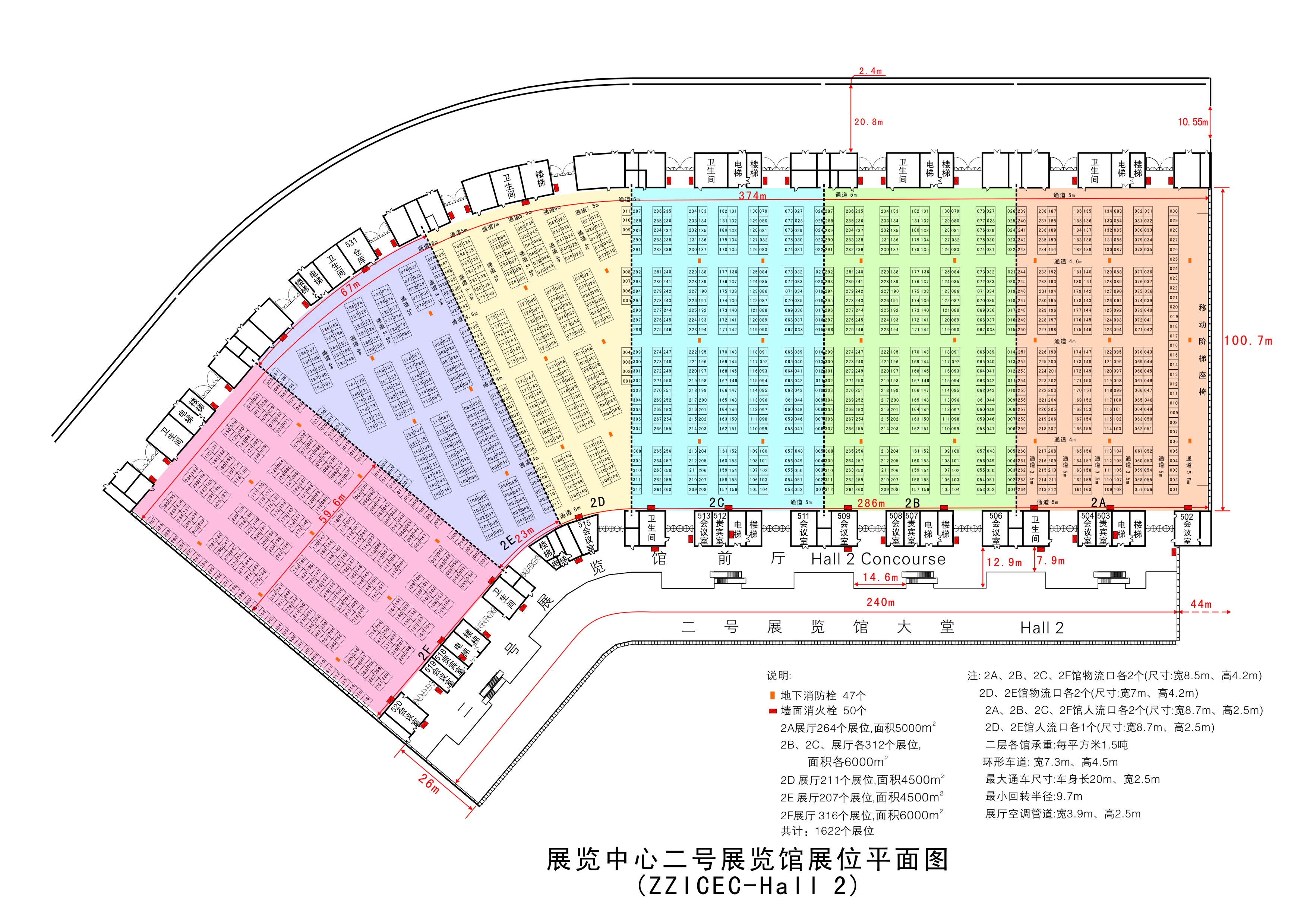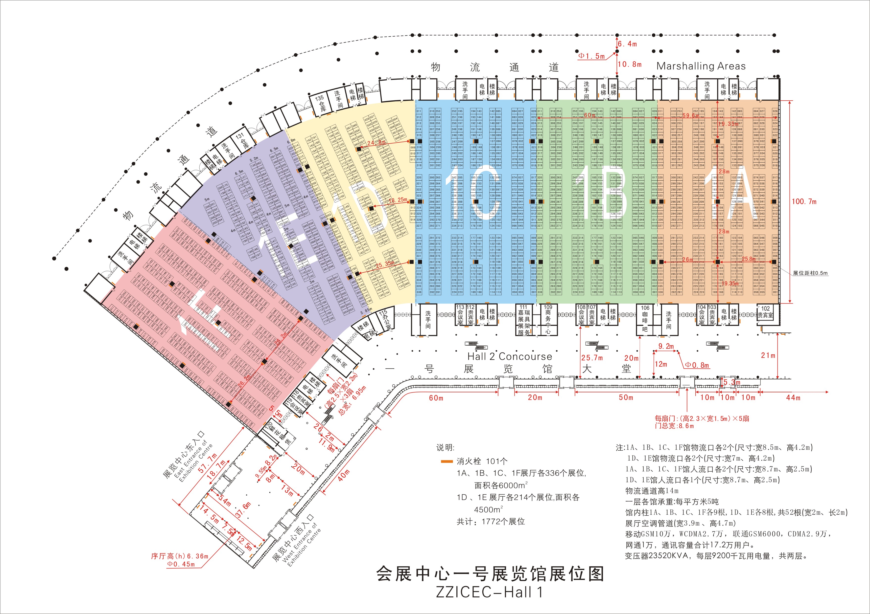 首頁展館介紹場館設(shè)施文章詳情 文章詳情 展覽中心平面圖及實景圖 1號展館3.3萬平方米,1772個標(biāo)準(zhǔn)展位,凈高14米,地面承重5噸/㎡; 2號展館 3.2萬平方米 ,1622個標(biāo)準(zhǔn)展位 ,凈高17.6米 地面承重1.5噸/㎡ ; 三層連廊(240mx26m),室外展場 3.8萬平方米, 停車場4.5萬平方米,設(shè)1800個停車位。
